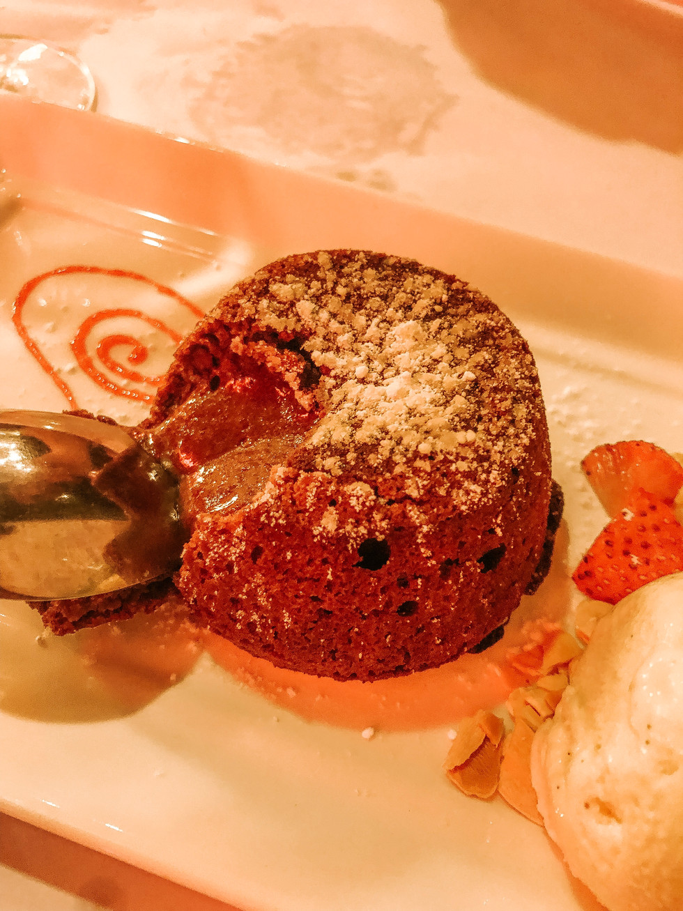 If you're still feeling indulgent after all this, the lava cake is our favrouite choice for dessert, filled with warm molten chocolate, contrasted with vanilla ice cream.